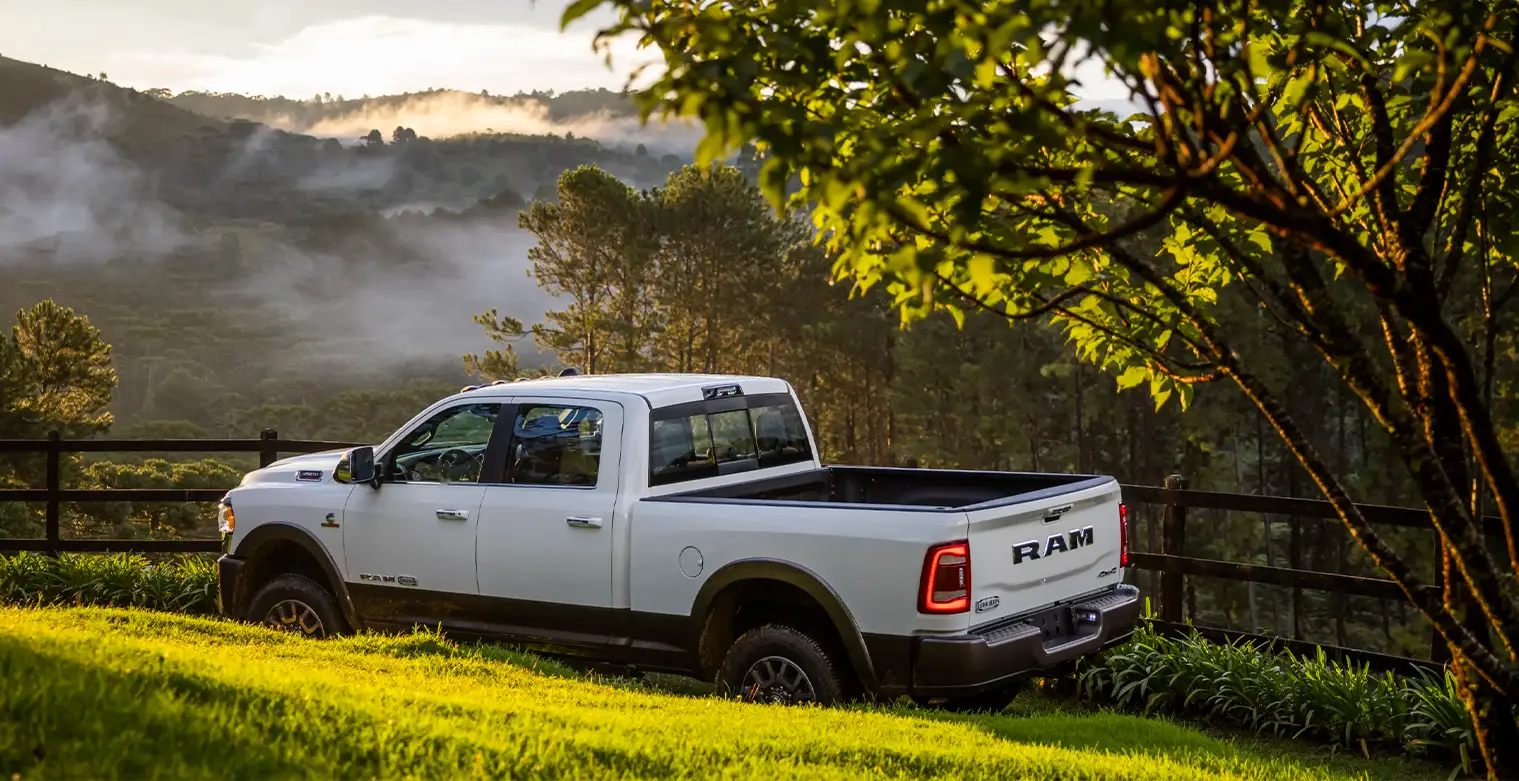 • Badges "LARAMIE", "RAM" e "4X4" na tampa da caçamba