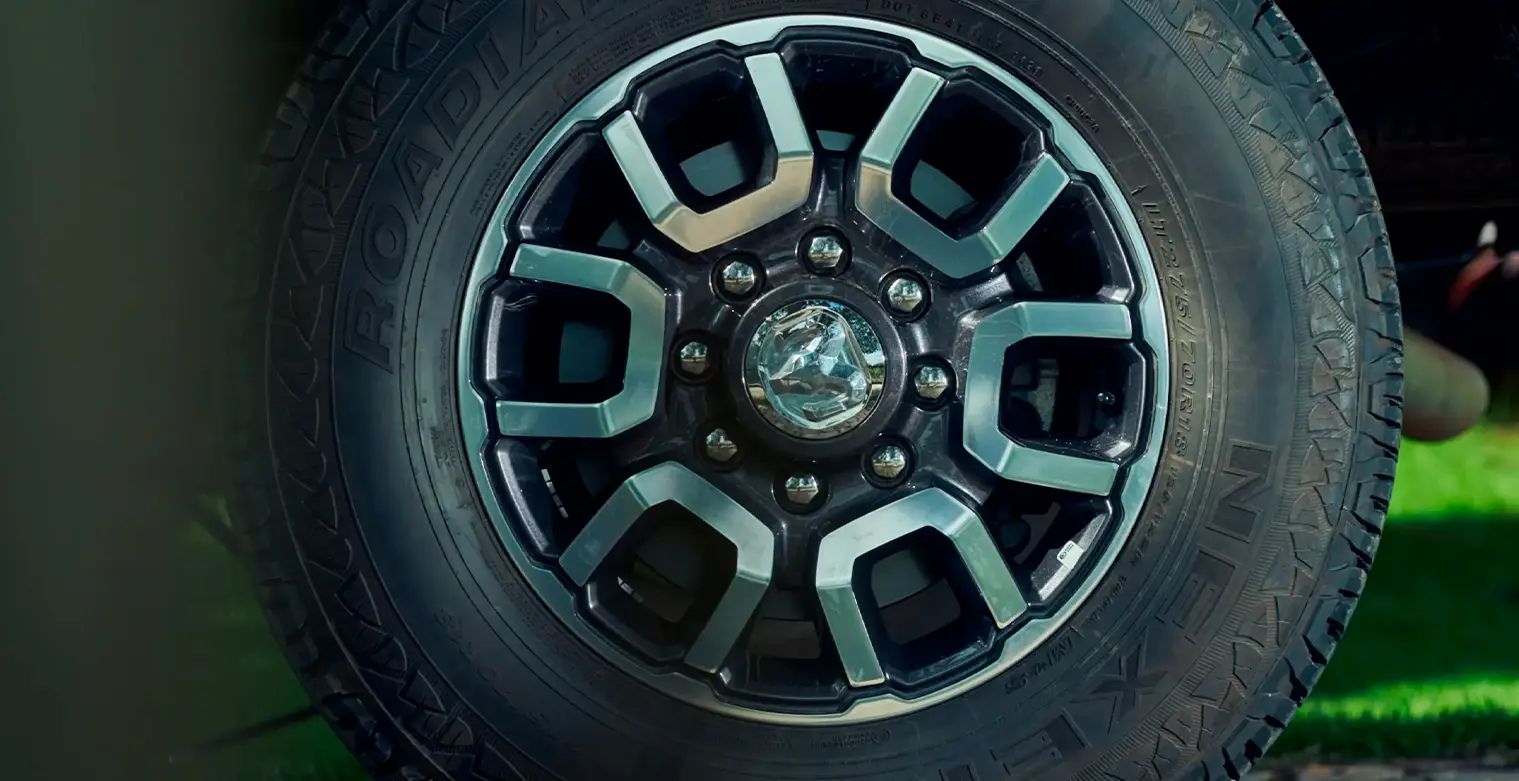 • Rodas de liga leve escurecidas de 18" e pneus de uso misto 275/70