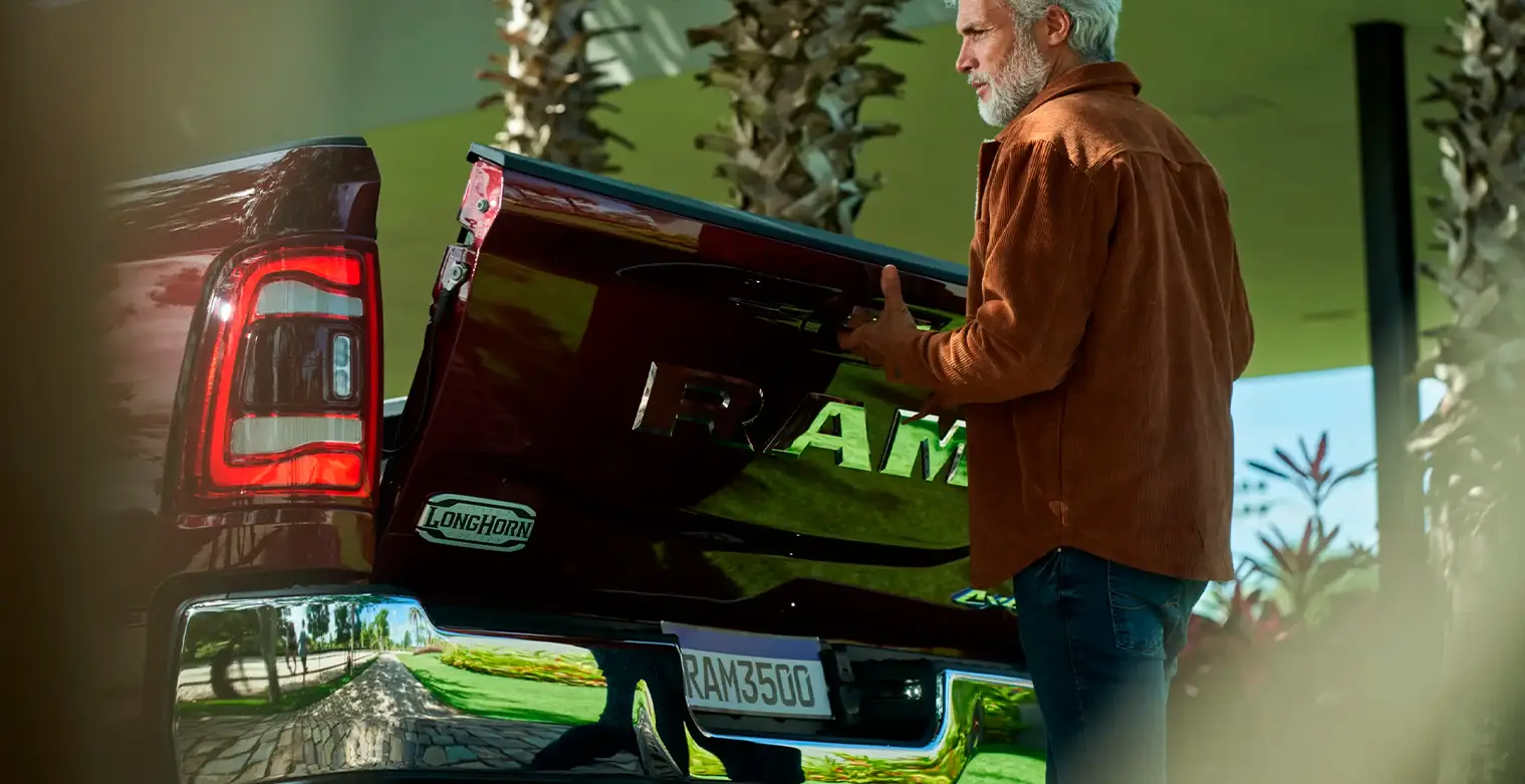 • Badges "Limited Longhorn", "RAM" e "4X4" na tampa traseira