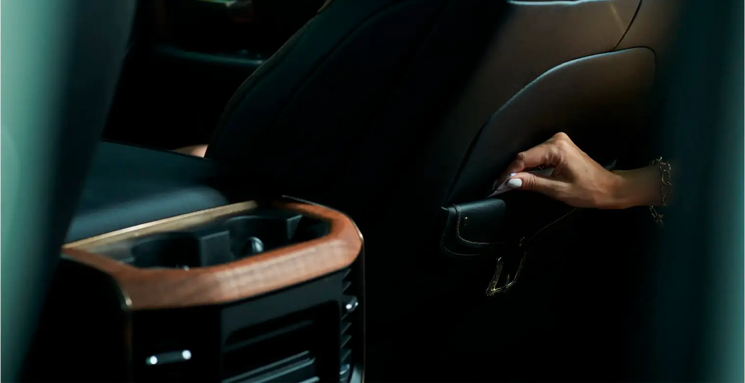 • Porta revista nos bancos dianteiros com acabamento de fivela